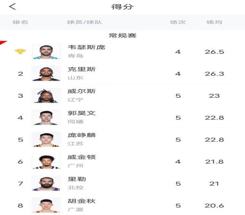 25-26赛季CBA常规赛正在如火如荼的进行当中,现阶段很多球队都已经打完了5轮比赛,而很值得一提的是,本赛季国内球员场均得分最高的竟然是一个1年级新秀球员,他5场比赛,场均能轰下22.8分,投篮命中率和三分球命中率比很多外援都要高。